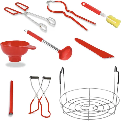 Kit de suministros para conservas – 9 piezas de acero inoxidable 430: estante, embudo, elevador de tarros, llave de tarro, levantador de tapa,