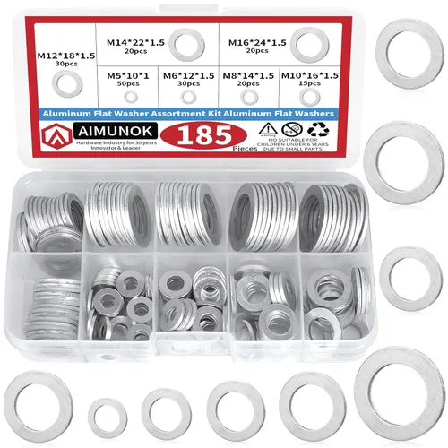 Varios tamaños: Hay 7 tamaños de arandelas de aluminio: M5 M6 M8 M10 M12 M14 M16. Disponibles en espesores de 1.0 mm y 1.5 mm, cumpliendo con diversos requisitos automotrices e industriales Material de alta calidad: hechas de aluminio de primera calidad, estas juntas métricas de tapón de drenaje de aceite para automóviles ofrecen una resistencia excepcional a la corrosión, lo que las hace ideales para entornos hostiles Embalaje conveniente: el juego de arandelas aplastacables de aceite de 185 piezas está alojado en una caja transparente duradera con compartimentos etiquetados, lo que permite una fácil identificación del tamaño y ofrece una solución de almacenamiento práctica para uso diario Rendimiento mejorado: Con una superficie lisa, estas juntas reducen la fricción entre los sujetadores, evitan fugas y dispersan la presión de manera efectiva. También ayudan a aislar las vibraciones y evitar el aflojamiento Aplicaciones versátiles: estas arandelas de aluminio son perfectas para aplicaciones automotrices y eléctricas, incluidas líneas de aceite, tapones de drenaje de aceite y más. Ya sea para mecánicos profesionales o entusiastas del bricolaje