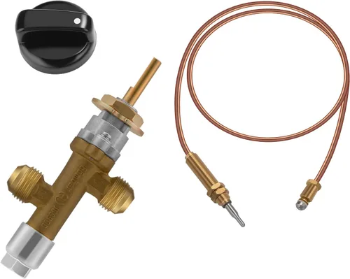Material: el kit de válvula de control de gas para fogatas está hecho de material de latón de alta calidad con construcción resistente para un uso duradero. Aplicación: Adecuado para Sistema de Control de Reparación de Baja Presión para Parrilla, Hoguera, Chimenea y Calentador Tamaño: Longitud del termopar: 600 mm / 23.62 pulgadas; Punta de la cabeza: M8; Diámetro del pomo: 44 mm; Inserto "D" para la válvula: 6.0-6.1 mm El termopar juega el papel de un sensor, detecta la llama y transmitirá una señal a la válvula solenoide en la válvula de control, la válvula solenoide recibe la señal antes de abrir el gas, para encender con éxito y mantener la llama sin apagarse. Entonces, en la instalación, la válvula de control y el termopar deben estar bien conectados, por lo que la válvula de control recibirá la señal transmitida por el termopar, pasará gas y se encenderá. 2. El termopar y la aguja de encendido en la instalación deben estar más cerca, para que el termopar pueda detectar la llama y la válvula solenoide reciba la inducción, permita el paso del gas y se encienda.
