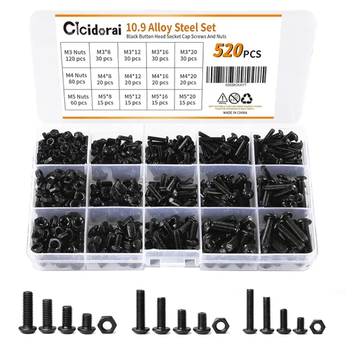Alta calidad: el kit está hecho de acero de aleación de grado 10.9 de alta calidad, tienen una excelente resistencia a la corrosión y excelente resistencia a la oxidación, resistencia a ácidos y álcalis, no contaminantes, no tóxicos, respetuosos con el medio ambiente y pueden garantizar un uso a largo plazo. 【CONTENIDO DEL PAQUETE】: Contiene 520 piezas de tornillos y tuercas (M3, M4, M5). Todos los tornillos y tuercas están empaquetados en una caja fuerte y duradera, soportan eficazmente el peso de todo el paquete. Amplias aplicaciones: este kit de clasificación de tuercas de tornillo (M3 M4 M5) es muy adecuado para profesionales, aficionados, propietarios, mantenedores, reparadores, carpinteros y trabajadores de la construcción. Se puede utilizar ampliamente en varias producciones de manualidades DIY, etc. 【COMPRA SIN PREOCUPACIONES】: Te proporcionaremos un servicio posventa confiable. Si tienes alguna pregunta sobre nuestros productos, no dudes en ponerte en contacto con nosotros, te responderé en 12 horas, y lo resolveremos pronto. Ten la seguridad de comprar.