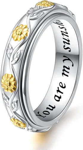 Ladytree Anillo giratorio de plata de ley con diseño de girasol You Are My Sunshine, anillo para aliviar el estrés, anillo de compromiso, boda,