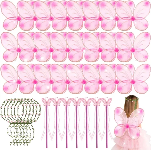 Lenwen 24 juegos de alas de hada para niños, alas de mariposa, disfraz de princesa, cosplay, corona, varita, cumpleaños