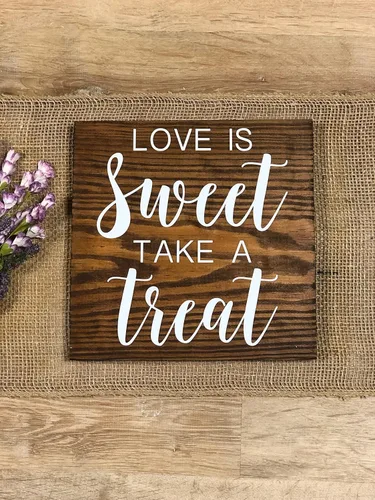 Hay texto preimpresoLetrero de madera de boda Love is Sweet Take A Treat