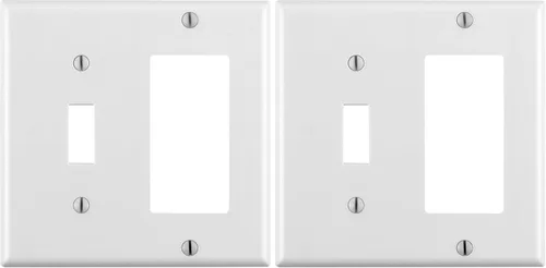 Leviton 80405-W 2-Gang 1-Toggle 1-Decora/GFCI - Placa de pared con combinación de dispositivos, tamaño estándar, termoestable, montaje para dispositivo, color blanco.