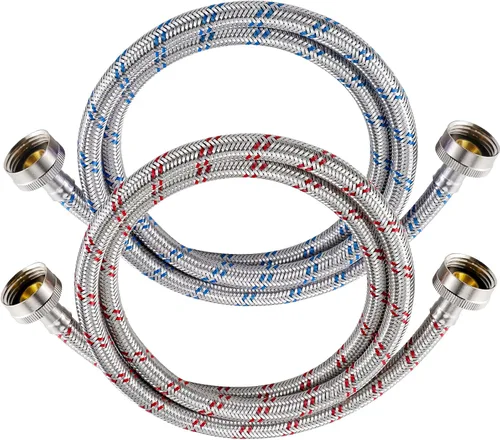 Mangueras de lavadora de 4 pies, 2 paquetes de mangueras de lavadora de acero inoxidable de alta calidad, a prueba de explosiones, mangueras de