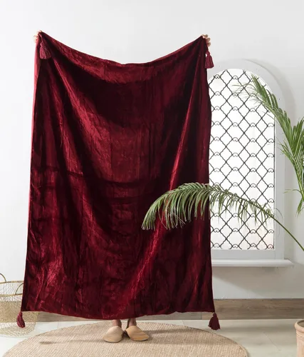 Pregunta sugerida sobre Manta de lujo de terciopelo rojo vino triturado con borlas, terciopelo suave, estilo bohemio, para sala de estar, 47.2 x 70.9 in ¿Qué incluye exactamente este set?