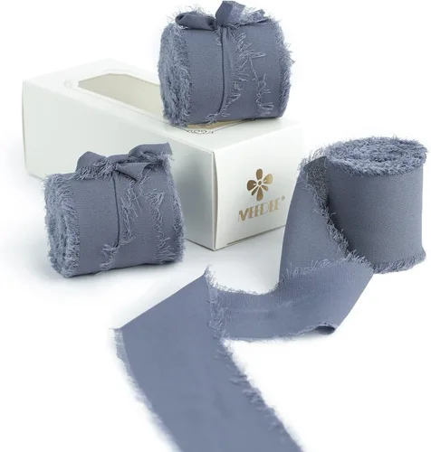 MEEDEE Cinta de gasa azul oscuro de 2 pulgadas, cinta deshilachada de gasa azul polvoriento para manualidades, cintas de gasa de seda para envolver