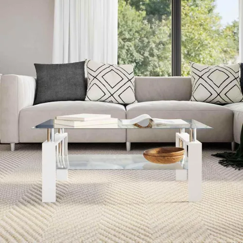 Mesa de centro para salaMesa de centro para salaMesa de centro blanca y transparente de 37.4 x 21.7 x 15.7 pulgadas, vidrio templado, adecuada para