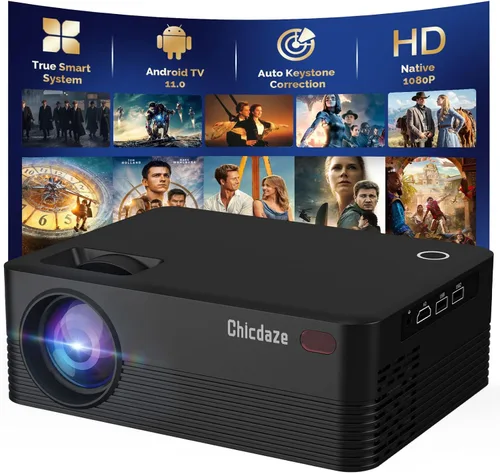 Mini proyector, proyector portátil con WiFi y Bluetooth, proyector inteligente para exteriores con cable HDMI, 300 ANSI, compatible con cine en casa