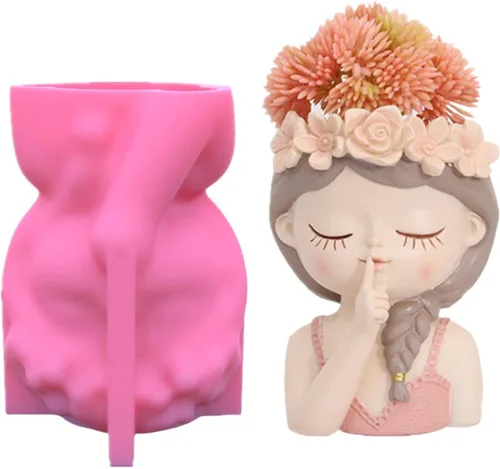 Molde de silicona para maceta, molde creativo para macetero de cabeza de niña, moldes de hormigón para maceta, jarrón de cactus, moldes de silicona