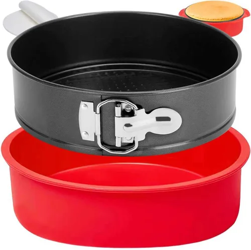 Sartén de resorte de alta calidad de 9 pulgadas antiadherente - Juego de sartén de resorte a prueba de fugas que incluye 1 sartén de resorte de 9 pulgadas antiadherente, 1 protector para molde de tarta de queso y 50 hojas de papel pergamino. El molde desmontable para pastel de queso es ideal para hacer pastel de queso, pastel de yogur, mousse, pastel de café, lasaña, quiche, paella, galletas y cualquier receta similar, y los moldes desmontables para hornear pastel de queso también son un gran y práctico regalo para tus amigos. Molde a prueba de fugas para tarta de queso - Molde de resorte de 9 pulgadas antiadherente hecho de acero resistente, a prueba de flexión, a prueba de óxido, de alta resistencia y buena dureza, sin BPA. El protector de molde de resorte está hecho de silicona de grado alimenticio. El protector de molde para pasteles a prueba de fugas no solo sirve como molde desmontable para tarta de queso, sino que también sirve como moldes para tarta de queso para hornear. Reutilizable y fácil de limpiar. ¡No se requiere papel de aluminio, dile adiós a las fugas desordenadas! Molde desmoldable antiadherente para tarta de queso - El molde desmoldable con revestimiento antiadherente de grado alimenticio es amigable tanto para tu salud como para el medio ambiente. El verdadero revestimiento de doble capa permite que el pastel se quite fácilmente sin daños, nunca más dañe un pastel porque parte de él se pegó a los moldes redondos para tartas. El revestimiento antiadherente hace que los moldes desmontables para pasteles sean fáciles de limpiar. Elige herramientas suaves para limpiar el molde para cheesecake, evita herramientas afiladas y ásperas para rayar el molde de espuma elástica. Sartén de Resorte de Liberación Fácil Molgree de 22,9 cm Antiadherente - Moldes de resorte de 22,9 cm con un cierre fuerte pero fácil de abrir que le permite separar el pastel del molde de resorte de 9 pulgadas sin complicaciones, le ayuda a sacar el pastel con el más mínimo empuje, luego se sella herméticamente cuando sea necesario. Los moldes para tarta de queso de forma de resorte con parte inferior extraíble, lo que hace que sea sencillo transferir tus productos horneados al plato de servir sin destruir la forma, con mejores resultados de calidad que otros moldes de resorte de 9 pulgadas. Molde desmontable multiusos de 9 pulgadas para tarta de queso: el molde para tarta de queso no solo es apto para horno, sino que también funciona en olla a presión y freidora de aire, resistencia al calor hasta 450 °F. Moldes de resorte con 50 piezas de papel pergamino, menos aceite significa menos grasa y mejor salud, molde de resorte para tarta de queso con protector proporciona una verdadera prueba de fugas. Si está buscando una sartén de resorte confiable, entonces esta es la mejor sartén de resorte de 9 pulgadas antiadherente que pertenece a su cocina.