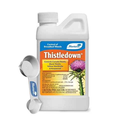 Monterey Thistledown incluido con cuchara medidora, concentrado de control de cardo y trébol herbicidas, 8 onzas