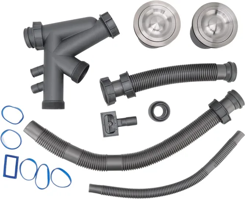 Montaje con un diseño de conexión rápida para una instalación segura y sin fugas. Hecho de acero inoxidable de alta calidad, polipropileno y PVC, garantiza durabilidad y drenaje eficiente. Fácil de montar y Flexible a varias formas de fregadero, es una opción práctica para cualquier cocina o fregadero utilitario. Ideal para propietarios de viviendas, entusiastas del bricolaje, profesionales de plomería, propietarios de pequeñas empresas y mejoradores de la lavandería. Especificaciones: Tipo de artículo: SinkDrainAssemblyKit Material: acero inoxidable+PP+PVC Peso: aprox. 48.8 onzas. Lavabo adecuado: lavabo doble, drenaje de 4.331 in/4.3 pulgadas, drenaje de doble lavabo de 1.969 in Lista del paquete: 2 x conjunto de cabezal de agua. 6 accesorios de tubería de agua. 6 juntas de sellado.
