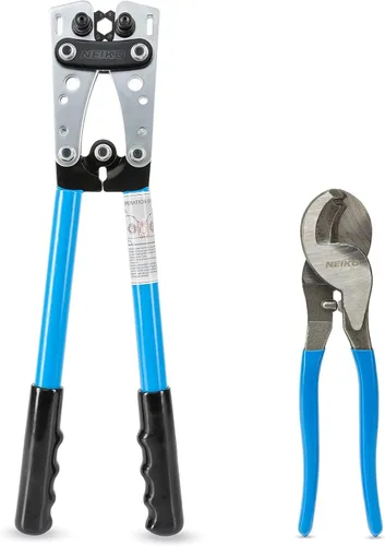 NEIKO 02039A Juego de Alicates para Crimpar Terminales y Cortador de Cable, Herramienta de Crimpado de Cable de Batería, 8-0 AWG, 6mm - 50mm