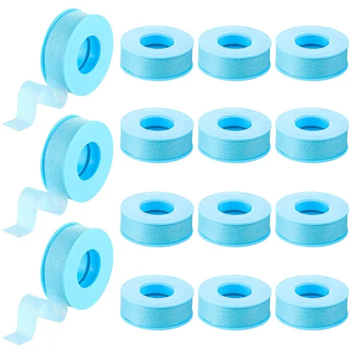 Nuanchu 12 rollos de cinta de pestañas azul a granel, cinta adhesiva reutilizable de silicona para extensiones de pestañas para pieles sensibles