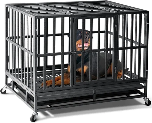 Protección de Grado Militar: Construido con paneles de acero de calibre 20 de 38 pulgadas y tubería de acero reforzada de 0.8 pulgadas de diámetro. Mientras que muchas ventas reducen costos con tubos de calibre más delgado y materiales de calidad inferior para ofrecer alternativas más baratas, nosotros mantenemos estándares de calidad inquebrantables. CONSEJO PRO: Compare los pesos del producto: las cajas más pesadas se correlacionan directamente con la integridad estructural. Diseñado para servirte durante años, no meses. Ya sea que elijas reemplazar las jaulas de perro cada 1 a 3 meses... o utilizar la misma jaula para perros durante varias estaciones, la elección es tuya, pero la calidad sigue siendo nuestra. Actualización de la placa base reforzada 2025: nuestra placa base rediseñada soporta hasta 200 libras, un 40% más fuerte que el piso de malla de alambre estándar. Di adiós a las manchas de óxido y lesiones en las patas. El revestimiento resistente evita daños en las garras, mientras que el espaciado ergonómico de la rejilla reduce la tensión de las articulaciones durante un uso prolongado. Características de la bandeja de drenaje ABS de alta calidad: Superficie de limpieza de 3 segundos ✓ Diseño de microranura antiolor✓ 98% de resistencia a la deformación a -20°F ~ 180 °F. Confiado por más de 370 k+ padres de perros desde 2003. Cada detalle refinado a través de más de 12,000 horas de estudios de comportamiento. No solo construimos jaulas, construimos confianza. Montaje sin esfuerzo y diseño de limpieza rápida: la mayoría de las piezas de la jaula para perros fueron premontadas, solo tienes que colocarla con cuatro ruedas y seis (solía ser diez) pernos de tornillo, solo tarda 5 minutos en completarse. Las dos bandejas inferiores extraíbles (una bandeja de plástico lavable de alta calidad y una bandeja de metal mejorada), hacen que la limpieza sea más conveniente. La crianza de perros puede ser un desafío, pero esta jaula convierte esas luchas en momentos libres de estrés: tu compañero definitivo en la creación de rutinas amigables con las patas. Garantía de devolución de dinero: Siempre nos esforzamos por proporcionar la mejor calidad de caseta para perros para tu perrito y prestamos más atención a tu experiencia de compra. Si hay algún problema con la caseta para perros dentro de los 30 días, por favor contáctenos directamente. Consejos de uso: Dejar la puerta de la jaula abierta durante las etapas iniciales puede ayudar a su perro a aclimatarse al nuevo entorno más rápidamente. Como la caja está hecha de acero, puede ocurrir algo de ruido cuando su mascota se mueve dentro. Para minimizar el ruido y proporcionar un área de descanso cómoda, recomendamos agregar una manta suave o una cama para mascotas. Los anillos de fijación incluidos se pueden utilizar para asegurar la placa base. Si tienes alguna pregunta durante el uso, no dudes en ponerte en contacto con nosotros; nuestro equipo de soporte profesional está disponible 24/7.