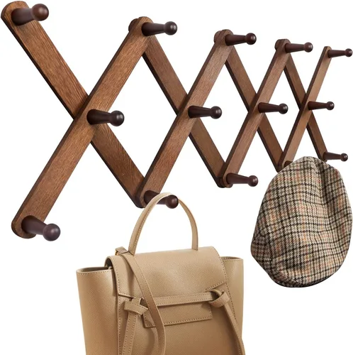 OROPY Perchero de pared de acordeón de madera, soporte de pared expandible con 14 clavijas, perchero expandible para sombreros para pared