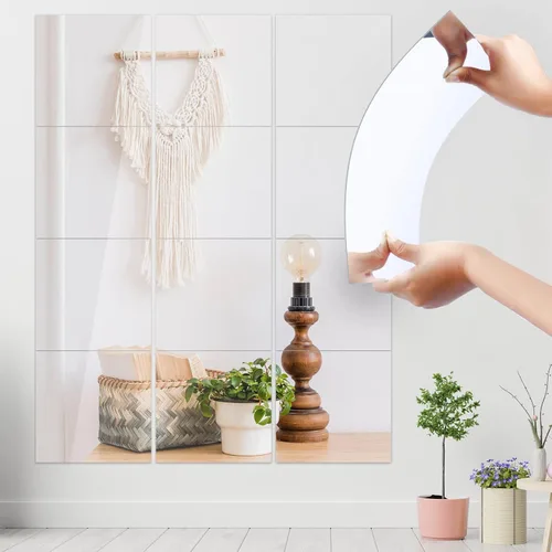 Calcomanías de pared de espejo de longitud completa, 12 x 12 pulgadas, azulejos acrílicos, láminas acrílicas adhesivas flexibles, espejo extraíble