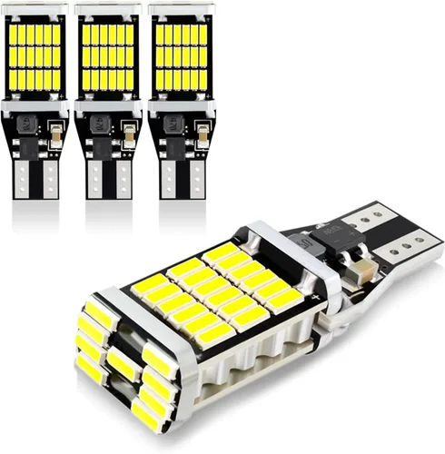 🚘 Juego de 4: 4 bombillas LED T15 con chipsets 45SMD 4014 de alta potencia, el tamaño de la bombilla es de 0.59 pulgadas x 1.57 pulgadas, la temperatura de color es de 6500K, la potencia de trabajo es de 4.32W, el ángulo del haz es de 360°. Mucho más brillante que las bombillas originales. Solo para luces de marcha atrás. Alta calidad: placa de circuito de PC óptima, temperatura constante continua, protege la mecha, disipación de calor más rápida, más duradera y tiene un diseño impermeable, sin condensador de sellado de circuito. No hay necesidad de precalentamiento, arranque instantáneo y respuesta rápida, lo que hace que la conducción sea más segura. Función: Controlador IC de corriente constante incorporado, garantiza confiabilidad incluso con fluctuaciones de voltaje. Los circuitos de protección garantizan un rango de temperatura seguro y una salida de luz constante, dando a la bombilla LED una vida útil de hasta 50.000 horas. 🚘 Diseño Súper: Enchufe estándar original, adecuado para la mayoría de los modelos, conectar y usar, instalación no destructiva, sin necesidad de modificación. El circuito de accionamiento IC inteligente del controlador garantiza que la bombilla pueda emitir con potencia constante e intensidad de luz con salida constante. 🚘 Aplicación: ángulo de iluminación de 360 grados, amplia compatibilidad con todos los coches, camiones, remolques, vehículos recreativos, etc. Perfecto para actualizar las luces de reversa y de respaldo halógenas tenues T15 para una visión más brillante y una conducción más segura. Ahorro de energía, baja temperatura, larga duración.
