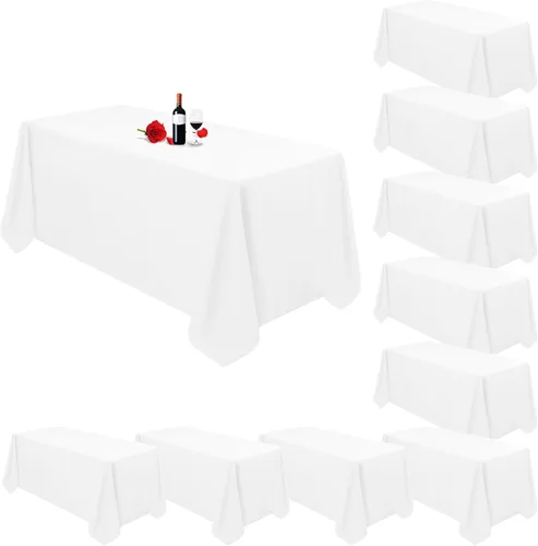 Paquete de 10 manteles rectangulares de color blanco para mesas rectangulares de 8 pies de 90 x 156 pulgadas, mantel rectangular de lino blanco de 8