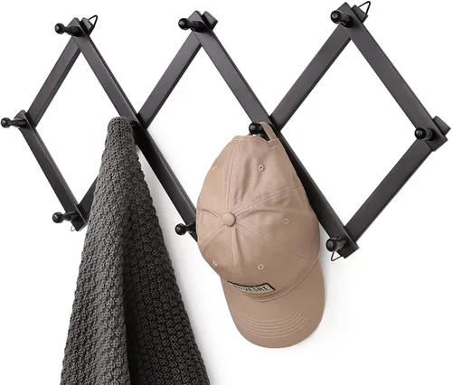 SCUNDA Perchero de pared con 10 ganchos, perchero expandible de pared de madera para abrigos, sombreros, gorras de béisbol, taza de café, joyas Negro