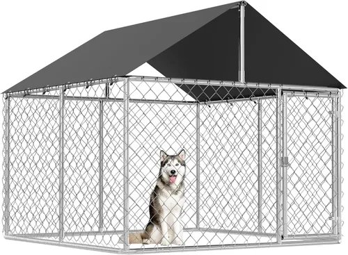Construcción resistente: las jaulas para perros Petony están construidas con metal galvanizado más grueso y malla de alambre de acero de alta calidad para una durabilidad a prueba de óxido. Las estacas adicionales garantizan una mayor estabilidad. Amplia zona de juego: Dimensiones: 78 pulgadas de ancho x 78 pulgadas de profundidad x 65 pulgadas de alto. Esta perrera para perros al aire libre es perfecta para perros pequeños a medianos, proporcionando un espacio ideal para entrenar, descansar y jugar al aire libre. Cubierta de techo con protección contra la lluvia y los rayos UV: la cubierta de techo está hecha de tela de polietileno de alta calidad, que protege contra la lluvia, el polvo, los rayos UV y la nieve ligera, por lo que es adecuada para uso durante todo el año. (Recomendamos quitar la cubierta durante fuertes nevadas) Fácil instalación: este kit de bricolaje viene completamente desmontado. Dos personas pueden completar el montaje en aproximadamente 1 hora. Se incluyen instrucciones detalladas, accesorios y guantes para tu comodidad. Experiencia de juego al aire libre: un toldo sobre la perrera permite que tu mascota disfrute del aire libre, ya sea en un día caluroso y soleado o durante el clima lluvioso. Cuando hay nieve pesada, se recomienda quitar el techo de la perrera para evitar que se derrumbe.