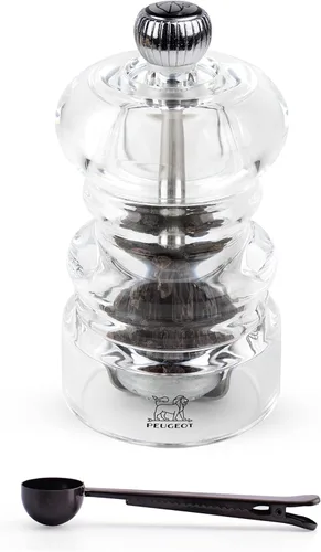 ¿Para qué sirve Peugeot - Molinillo de pimienta manual acrílico Nancy - Juego de regalo de molinillo ajustable transparente - Con cuchara de especias de acero?
