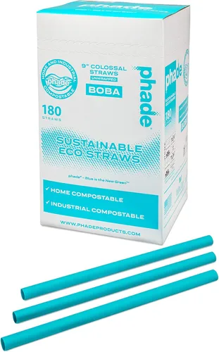 Pajitas a base de PHA: hechas de un biopolímero derivado del aceite de canola llamado PHA, estas colosales pajitas ofrecen una alternativa fuerte y confiable al plástico, ofreciendo un alto rendimiento para el uso diario y bebidas espesas como té Boba, batidos y batidos. Tamaño: el popote Colossal/Boba mide 9.0 pulgadas de largo con un diámetro interior de 0.437 pulgadas. Disponible en paquetes individuales de 180 y cajas a granel de 720 pajitas. Ideal para té boba/burbujas, té con leche perla, batidos congelados y batidos gruesos. Cumple con las leyes de etiquetado específicas del estado, estas pajitas se empaquetan como compostables domésticas e industriales para su uso en estados regulados. Las reclamaciones biodegradables marinas están excluidas de los envases en estos estados. Sin envolver para mayor velocidad y eficiencia: diseñadas para entornos de servicio de ritmo rápido, estas pajitas sin envolver son perfectas para estaciones de acceso rápido, mostradores de autoservicio y uso de alto volumen donde el saneamiento se administra en el punto de servicio. Fabricado en los Estados Unidos – Fabricado con orgullo en los Estados Unidos, las pajitas phade proporcionan una solución a base de plantas que funciona como el plástico tradicional y se mantiene mejor que el papel, ideal para empresas comprometidas a reducir el uso de plástico sin comprometer la calidad.