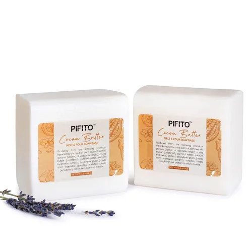 Pifito Base de jabón para derretir y verter manteca de cacao (2 libras) │ Base de jabón de glicerina 100% natural prémium │ Suministros de lujo para