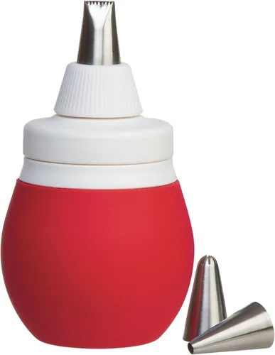 Contiene (1) Kit de decoración de bombillas de glaseado de 4 piezas PrepWorks, incluye 3 puntas de tubería, color rojo. Juego completo de decoración: incluye 1 bombilla de glaseado, 3 puntas de tubería de acero inoxidable (estrella cerrada, cesta, círculo pequeño) y un acoplador para decorar galletas, pasteles y cupcakes. Apto para microondas y versátil: la bombilla de silicona de alta temperatura es apta para microondas hasta 600 °F, ideal para calentar glaseado o ganache antes de tuberías. Cómodo y fácil de limpiar: tiene capacidad para 3/4 de taza, con puntas que se almacenan dentro de la bombilla cuando no está en uso; todos los componentes son aptos para lavavajillas para una fácil limpieza. PrepWorks ofrece herramientas de cocina innovadoras y prácticas diseñadas para simplificar la preparación de comidas. Desde el almacenamiento de alimentos hasta los elementos esenciales para hornear y cocinar, nuestros productos combinan calidad, funcionalidad y comodidad en cada hogar.
