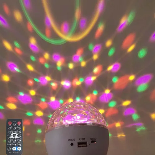 Proyecciones dinámicas de luz: luces de fiesta activadas por sonido RGB proyector de bombillas a todo color con proyección dinámica rotacional de 360 ° de color múltiple Iluminación de DJ de luz, puede ajustar la velocidad, los colores y el brillo de la lámpara Galaxy para crear un efecto de escenario similar a una bola de discoteca en la sala de galaxia, proyector de luz nocturna E27; Altavoces de luz de baile de escenario con lámpara estroboscópica: proyector de luz nocturna de bola de discoteca RGB con la lámpara estroboscópica de altavoz integrado, y la luz bailará con la música; Control remoto: Etapa Par Light Galaxy Proyector Proyección de estrellas con control remoto, puede encender/apagar la lámpara, cambiar el modo de iluminación, ciclo a través de efectos de luz, ajustar el brillo, ajuste de velocidad del motor giratorio de luz, encendido/apagado el movimiento o ajustar el volumen de sonido para la luz de decoración de la habitación de la galaxia; Aplicación del proyector portátil de luces de fiesta activadas por sonido para niños: Dj Lighting Disco Ball E27 Base LED de cambio de color lámpara proyector bombilla perfecta para decoración en hogares, clubes nocturnos, bares y salas de recepción, para la adaptación de vacaciones, bodas, cumpleaños, fiestas de baile, Navidad y otras fiestas y luz de celebración, crea un maravilloso ambiente de estado de ánimo; Nota: Si hay algún problema para las luces de proyección LED, por favor póngase en contacto con nosotros directamente gratis en cualquier momento, si no está satisfecho con su compra. Te atenderemos hasta que te satisfage;