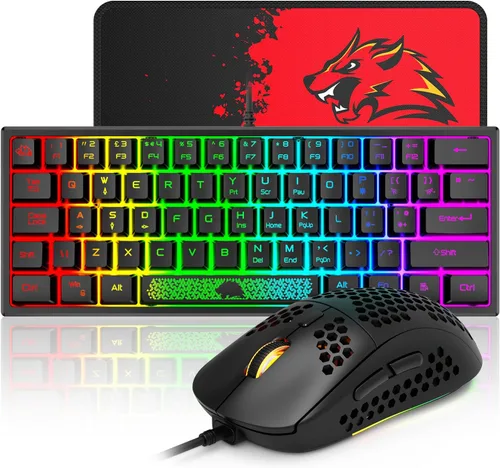 Combo de teclado y mouse para juegos XINMENG 60% con retroiluminación RGB mini, sensación mecánica y mouse óptico mecánico RGB de 6400 DPI con
