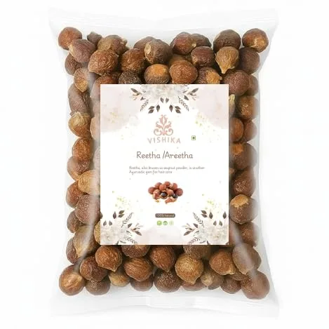 Reetha 100% puro y natural: jabones enteros de alta calidad (Areetha) procedentes de granjas de confianza, suavemente secadas al sol para preservar las saponinas naturales. Limpiador Ayurvédico Tradicional: Reetha se ha utilizado durante siglos como un champú natural y purificador del cuero cabelludo, conocido por sus propiedades de limpieza suaves pero efectivas. Rico en saponinas naturales: produce espuma natural cuando se empapa o se hierve, por lo que es una alternativa suave y libre de químicos a los champús sintéticos. Ideal para el cuidado del cabello de bricolaje: perfecto para hacer champú de hierbas casero, enjuague para el cabello, agua reetha o mezclar con Amla y Shikakai para un trío completo de cuidado del cabello ayurvédico. Multiusos: además del cuidado del cabello, Reetha es ideal para la limpieza natural del hogar, la limpieza de joyas y la fabricación de detergentes ecológicos.