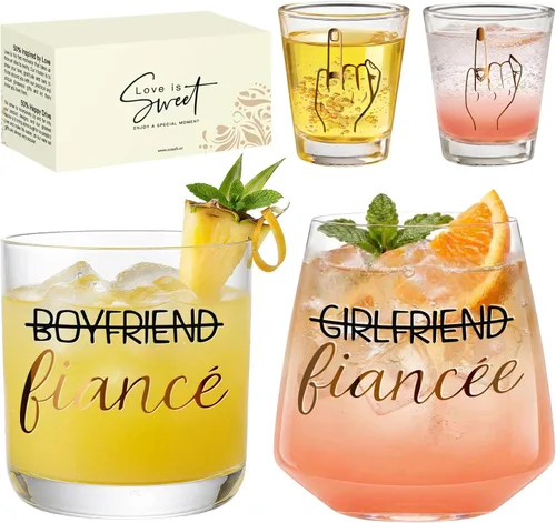 Regalo de compromiso para ella: es el regalo perfecto de despedida de soltera para la futura novia. Mira cómo crece su sonrisa mientras abre sus copas de vino de compromiso y lee "Prometida" grabada en hermosa cursiva. Infundido con: Nuevos comienzos y nuevos recuerdos, así que cada vez que use estas copas de vino de compromiso, ¡se llenará de emoción mientras planea su día de boda! Impresionantes regalos de compromiso para parejas: este delicado set de regalos de compromiso para recién comprometidos será el regalo perfecto para la futura novia o el futuro novio. Será una idea de regalo maravillosa para Navidad, compromiso, boda, aniversario, novia, registro de boda, Sr. y Sra., cumpleaños de él y ella, otros días importantes. Unas bolsas de arpillera para vino extra: puedes usar las bolsas de arpillera para vino para hacer que tu regalo de compromiso sea elegante. No solo protegen del polvo, sino que también hacen que los regalos para la pareja comprometida sean una sorpresa para tu prometida. Perfectas para fiestas de compromiso, decoraciones de boda, San Valentín. Adecuadas para vino tinto, champán, whisky, cerveza. Puedes usarlas para dulces y otros regalos que desees. Los mejores regalos de compromiso para parejas: los regalos de compromiso con el prometido y la prometida serán los mejores regalos de compromiso para parejas. Puedes celebrar tu nueva aventura con un regalo de boda para los recién casados. Son el regalo perfecto para parejas que celebran su compromiso, y para los recién casados que están a punto de convertirse en novios. Vea cada día especial con sus seres queridos/amados/queridos. VASOS DE CALIDAD ALTA PARA VINO - Estos vasos de vino tinto y vasos de whisky son duraderos, con una impresión colorida vibrante que es resistente al calor. La base ancha del vaso de vino tinto sin tallo evita derrames y bamboleos, y elimina el riesgo de rotura del tallo que es común con los vasos de vino tradicionales. Regalos de despedida de soltera para cualquier ocasión especial: este exclusivo juego de regalo de compromiso es el regalo perfecto de boda o compromiso para novios/prometidos/maridos/novias/prometidas/esposas/parejas. Vienen en hermosas cajas de estilo moderno y son perfectas para cenas, fiestas, regalos de boda, regalos de novia, regalos de cumpleaños, regalos de Acción de Gracias y regalos conmemorativos del día de San Valentín, regalos de Navidad. Cada vez que usen este juego de copas de vino, se recordarán el dulce y apasionado tiempo de amor que compartieron.