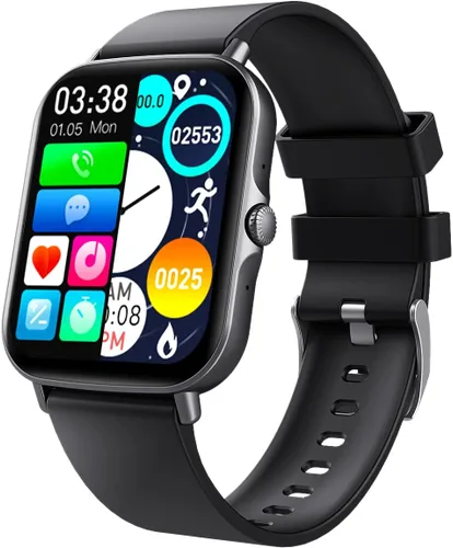 Recepción y marcación de llamadas Bluetooth: Después de conectarse al teléfono móvil, las llamadas telefónicas se pueden responder y realizar directamente en el reloj inteligente. Y también puede recibir mensajes pushs, leerlos desde la aplicación SNS como SMS, correo electrónico, SNS (twitter, whatsapp, facebook, ins, etc.) pero sin función de respuesta. Monitor dinámico de salud: este reloj inteligente está equipado con un chipset de alto rendimiento, que admite un registro de datos físicos detallado para ayudar a prestar más atención a su cuerpo y alertas oportunas en problemas de salud. Además, los relojes inteligentes pueden registrar la frecuencia cardíaca, la presión arterial, el oxígeno en la sangre y monitorear el estado del sueño, y los datos del historial podrían sincronizarse con la aplicación en el teléfono y verificarlos usted mismo. Pantalla táctil completa HD de 1.69 pulgadas y modo de pantalla dividida: el reloj inteligente para Android 4.4, iOS 8.0 adopta pantalla HD 【Full Touch real】 e imagen de alta resolución de 240* 280, que ofrece imágenes de fondo personalizadas gratuitas. Los relojes inteligentes admiten pantalla dividida para transferir rápidamente a otra interfaz de función a menudo uesd. Multifunciones para deportes y vida diaria: Elevar para despertar, control remoto de fotografía del teléfono, control del reproductor de música, ajustes de alarma, recordatorio sedentario, recordatorio de tomar agua y medicina, pronóstico del tiempo para la vida diaria. El reloj inteligente también cuenta con cálculo de calorías y distancia en modos multideportivos y rastreador de fitness, rastreador de actividad, podómetro, cronómetro y más funciones esperando tu exploración. Batería de larga duración e impermeabilidad IP67: este reloj inteligente impermeable profundo de nivel de natación es adecuado para lavarse las manos, lluvia, nadar y ducharse, pero no para bucear, sumergirse en agua caliente, vapor o sauna. La batería de gran capacidad de 220 mAh solo necesita cargarse durante 2 horas, funciona con una duración de 6 a 7 días en uso normal.