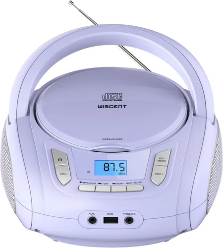 Reproductor de CD de radio con Bluetooth, radio FM, reproducción de MP3 USB, entrada auxiliar, conector para auriculares, compatible con CD MP3,