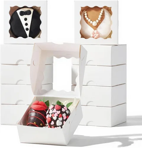 RomanticBaking 3 ¼" x 3 ¼" x 1 ½" 50PCS Cajas de Trufas de Chocolate para 4, Cajas de Galletas Cajas de Panadería Mini con Ventana para Brownie,