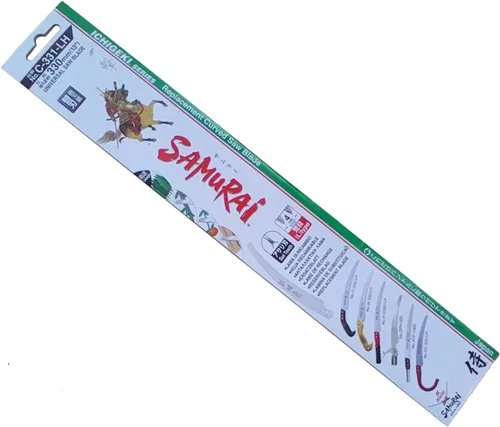 Samurai C-331-LH - Hoja de sierra curvada de 13 pulgadas, solo para Samurai C-330-LH ICHIGEKI (Serie C) Un favorito desde hace mucho tiempo del arbolista tradicional y jardinero entusiasta. Una sierra curvada resistente con dientes fijos que ofrece una durabilidad y resistencia excepcionales. El mango de pistola de diseño ergonómico ayuda a crear: una sierra bien equilibrada y fácil de usar. El mango diseñado por computadora se basa en principios de ingeniería humana. La empuñadura está cubierta con cojín de goma para evitar resbalones. La curva especial del mango reduce el esfuerzo requerido para cortar, lo que permite cortar material más duro con facilidad. El extremo con muescas del mango evita caídas accidentales de la sierra cuando se sujeta libremente. Especificaciones: Modelo: C-331-LH Tipo de hoja: Curvo. Longitud de la hoja: 330 mm (13") Paso del diente: 0.157 in.