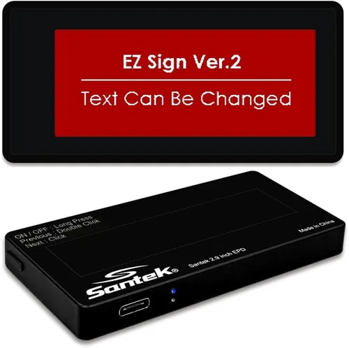 Santek EZ - Letrero digital de papel electrónico de 2.9 pulgadas, recargable, inalámbrico, pantalla tricolor eink con mensajes personalizables con