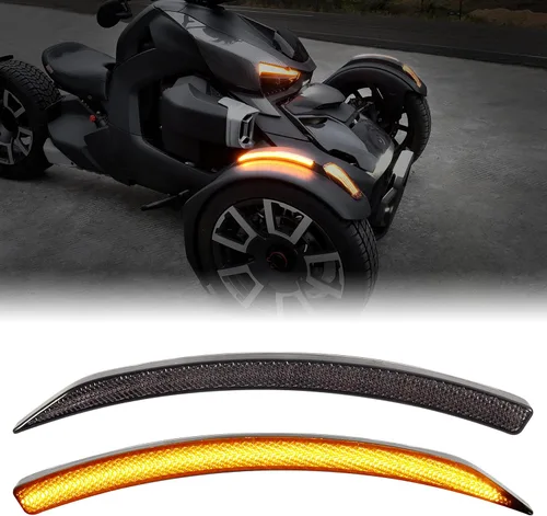 SAUTVS Luces LED para guardabarros delanteros para Can-Am Ryker, luces LED delanteras negras ahumadas, reflectores de guardabarros con señales de