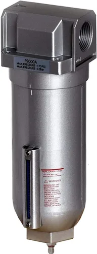 ¡Nuevo! !! Nuevo separador de filtro de línea de aire comprimido de alto flujo de 3/4 "Filtro de partículas. Este filtro elimina líquidos y residuos de su línea de aire comprimido para prolongar la vida útil de sus herramientas y accesorios de compresor. Caudal de 185 CFM 3/4" FPT Puerto de entrada de aire 3/4" FPT Puerto de salida de aire FPT Elemento de filtro de 5 micras. Soporte de montaje en pared incluido Mirilla en cuenco de metal para ver tu nivel de humedad y drenaje manual 250 PSI Presión máxima de entrada Capacidad de drenaje 10.1 fl oz Capacidad de aceite Los filtros de aire comprimido de 11.8 fl oz protegen tu equipo del polvo, la suciedad, el aceite y el agua. El polvo desgastará su equipo (como el motor de aire en amoladoras, actuadores neumáticos y puede hacer que las válvulas de control neumático se atasquen. Especialmente cuando la suciedad y el polvo se combinan con el aceite (que a menudo es el caso de los compresores), se puede formar un desastre pegajoso dentro de las válvulas, motores y otros equipos de aire comprimido.