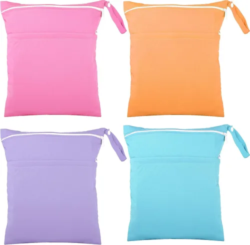 4 colores: el paquete viene con 4 pañales de tela de diferentes colores, incluyendo azul, morado, rosa, naranja, una amplia cantidad que puede permitirte llevar a tu bebé pañales húmedos y secos en la bolsa diferente Material duradero: la bolsa de pañales reutilizable está hecha de poliéster de calidad con película impermeable de TPU en la parte posterior, duradera, fiable y reutilizable, se puede lavar a mano o a máquina, no se deforma ni decolora fácilmente, se puede aplicar durante mucho tiempo Tamaño adecuado: el tamaño de las bolsas húmedas y secas para bebés es de aproximadamente 11.8 x 14 pulgadas y tiene capacidad para alrededor de 5 a 7 pañales de bebé, peso ligero y fácil de llevar, y antes de usar, es plegable, no ocupa mucho espacio Diseño considerado: las bolsas de pañales de tela tienen doble capa, con 2 bolsillos con cremallera, fáciles de separar pañales sucios y limpios u otros artículos húmedos, deja que tus artículos estén más organizados, y los organizadores de bolsas húmedas y secas están equipados con una cuerda, se pueden sostener en tu mano o colgar en la bolsa Amplia aplicación: las bolsas multifuncionales no solo se pueden aplicar como una bolsa de pañales seca y húmeda para pañales de bebé, sino que también se pueden aplicar como una bolsa ordenada, bolsa de almacenamiento, bolsa de maquillaje, bolsa de mano, bolsa de lavandería, bolsa de pañales de tela para gatos, y puedes compartirlas con tus amigos, madres novatas y colegas