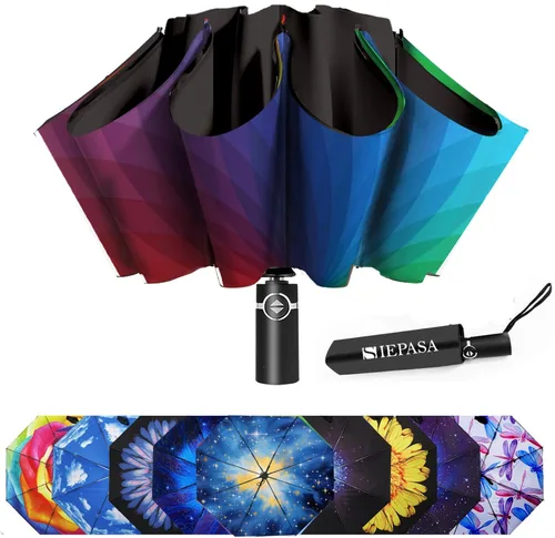 SIEPASA Paraguas invertido, paraguas compacto grande resistente al viento para lluvia y sol, paraguas inverso compacto, paraguas plegable de viaje