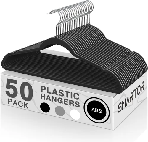 SMARTOR Perchas de plástico para ropa, paquete de 50 perchas de plástico resistentes para ropa, perchas delgadas sin terciopelo con gancho giratorio