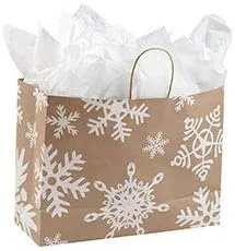Kraft y blanco Bolsa de compras al por menor de copo de nieve gigante Bolsa de papel kraft de copo de nieve gigante 16"x6"x12 1/2" Bolsa de regalo navideña de copo de nieve gigante