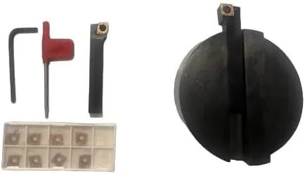 Cortador de moscas de 4 pulgadas/3.937 in tamaño de la cabeza. Se suministra con mano izquierda y derecha un portaherramientas de vástago cuadrado de 1/2 "- 12 mm equipado con punta de carburo (CCMT09) para revestimiento de metal en torno y fresadora. Tamaño del vástago 3/4" - 19mm de diámetro redondo y 1.457 in de largo con precisión vástagos rectificados 1 cortador de moscas / 2 soportes SCLCL SCLCR / 10 insertos CCMT 09T304 / 1 llave Torx / 1 llave Allem Hecho en la India