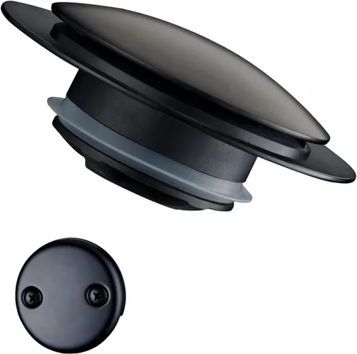 Tapón de Drenaje de Bañera Negro, Welsan Tapón Universal Pop Up de Bañera de Repuesto Tip Toe, Levantar y Girar con Cubierta de Placa Frontal de