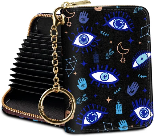 Tarjetero RFID para tarjetas de crédito, cartera pequeña para mujer con llavero con cremallera, divertido estampado de cuero para tarjetas de