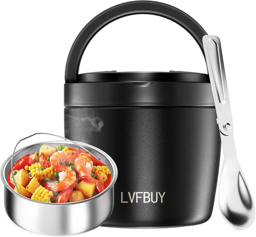 1. A prueba de fugas y portátil: este recipiente de alimentos aislado cuenta con un sello de silicona seguro y una tapa segura de bloqueo giratorio que evita fugas y derrames. Un mango oculto y una cuchara plegable mejoran la portabilidad y la comodidad, mientras que la base de silicona antideslizante garantiza la estabilidad en cualquier superficie 2. Aislamiento a largo plazo: aislamiento de acero inoxidable al vacío de doble capa durante más de 6 horas, aislamiento frío durante más de 8 horas, satisfaciendo las necesidades de todo tipo de clima. La comida caliente al vapor que preparó cuando fue a trabajar por la mañana todavía está caliente al mediodía y no necesita ser recalentada. Al mismo tiempo, también puedes traer tus alimentos favoritos como sopas, pasta, ensaladas, verduras, puré de frijoles y salsas para ir de campamento o viajar con tu familia y amigos, sin preocuparte de que la comida se enfríe o no tenga un buen sabor Capacidad de 3 、 32 onzas: este termo de alimentos es un poco grande y adecuado para uso en adultos, elige cuidadosamente. Este gran recipiente de alimentos de 32 onzas es bueno para almacenar tus platos favoritos. Es muy útil para envasar comidas calientes como caldo de carne, pasta, ensaladas, verduras, hummus y salsas para mojar. Y la apertura es muy grande, por lo que es fácil de limpiar a mano y lavavajillas 4. Recordatorio: antes de usar este frasco de alimentos para cargar alimentos calientes o fríos, vierta agua caliente o fría para precalentar o enfriar durante 3-8 minutos, lo que puede prolongar el tiempo de aislamiento o enfriamiento y lograr mejores resultados 5. Materiales seguros: hecho de acero inoxidable de alta calidad apto para alimentos, este producto es resistente al óxido y diseñado para apoyar tu viaje diario hacia comidas nutritivas y sin preocupaciones