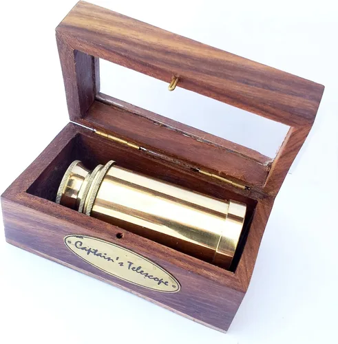 Telescopio hecho a mano con caja de madera Fabricado con latón completo Colección Marítima Náutica Pirata Juguetes y juegos
